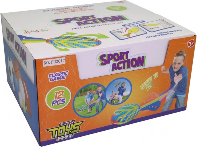 Vsako pakiranje vsebuje 12 kosov v atraktivnem display boxu, idealno za družine, vrtce, igralne kotičke ali kot sezonsko blago v trgovinah. Različne barve spodbujajo igrivo tekmovalnost in preglednost pri skupnih dejavnostih.
