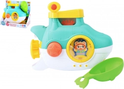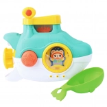 Ta barvita podmornica za kopel otrokom prinaša hkrati zabavo in učenje. S priloženo lopatko nalijte vodo v zgornji del in opazujte, kako se zavrtijo premični elementi in kako začne voda teči. Praktični priseski poskrbijo, da podmornica trdno drži na gladkih površinah kadi ali ploščic.