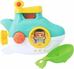 Zabavna plastična podmornica za kopel spremeni vsako kopanje v majhno pustolovščino. Zahvaljujoč priseskom jo preprosto pritrdite na steno kadi ali ploščice, v zgornji del lahko z lopatko nalivate vodo in opazujete premične elemente ter vodne učinke. Barvit dizajn podpira domišljijo in razvoj motorike. Primerno za otroke od 12 mesecev.