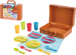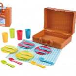 Uživajte v igrivem pogostitvenem doživetju kjerkoli s tem barvitim setom v praktični košari. Vsebuje vse za postrežbo za štiri – krožnike, lončke in pribor – ter tudi odejo. Lahka in varna izvedba je idealna za otroke od 2 let in odlično spodbuja domišljijo ter socialno igro doma, na vrtu in na prostem.