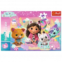Odkrijte zabavno otroško sestavljanko z motivom GABBY’S DOLLHOUSE znamke TREFL. Set vsebuje 24 izredno velikih koščkov, idealnih za majhne ročice in prve korake v sestavljanju. Po sestavitvi nastane slika dimenzij 60 × 40 cm. Kakovostna izdelava, odporni materiali in površina z nežnim leskom za lažje sestavljanje bodo razveselili vsakega malega ljubitelja mačjega sveta.