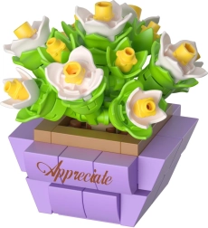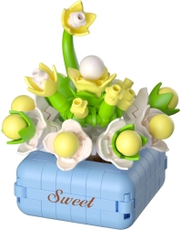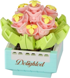 Zgradite si svoj košček narave brez skrbi za zalivanje. Sestavljanka KOCO Bloom Boutique prinaša pisano kolekcijo mini cvetov in sočnic v dizajnerskih lončkih z motivi, kot so Joyful, Happy ali Fortunate. Vsak set razveseli kot drobna dekoracija za pisalno mizo, polico ali kot prijetno presenečenje za bližnje.