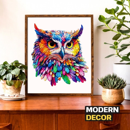 Privoščite si kakovostno leseno sestavljanko, ki združuje vrhunsko izdelavo z okolju prijazno proizvodnjo. Vsak košček je unikaten, natančno izrezan z laserjem za prijetno in tekoče sestavljanje. Sodoben UV digitalni tisk zagotavlja žive in podrobne barve, zaradi katerih motiv sov izstopa kot stilska dekoracija.