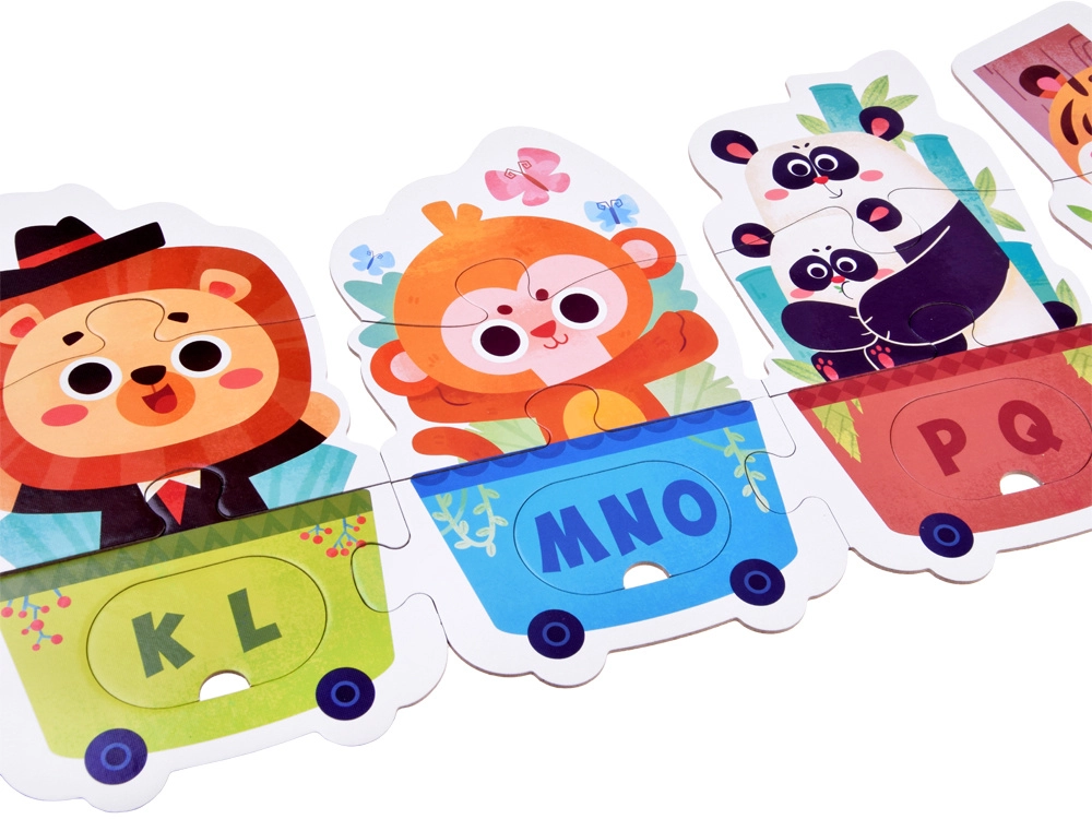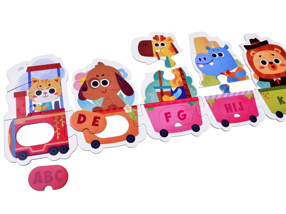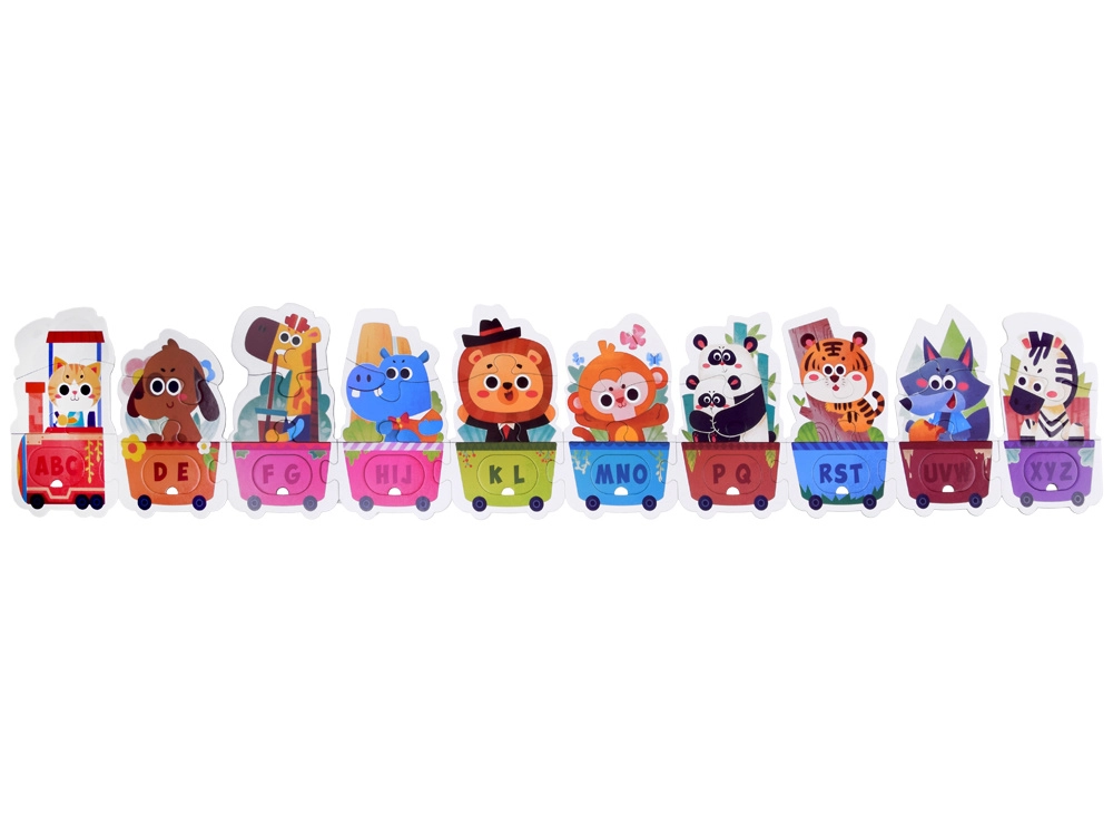 Igrivi abecedni vlak spremeni učenje črk v veselje. Vsak vagon nosi eno črko in prijazno žival, ki pomaga otrokom povezati znak s konkretnim besedom. Veliki, enostavno oprijemljivi kosi iz trpežnega materiala so zasnovani za majhne roke in pogosto sestavljanje.