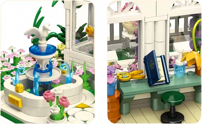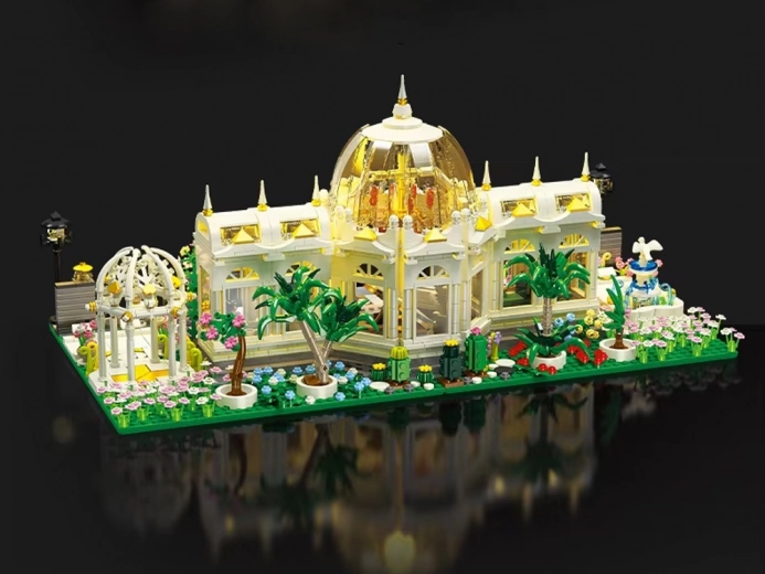 Model bo razveselil zahtevne graditelje: najdete elegantne stebre in balustrade z zlatimi poudarki, realistične poti, premična vrata in številne dodatke – od mizice s knjigo in škarjami, prek fortepiana, do drobnih okraskov. Večerno atmosfero dopolni LED osvetlitev, ki razsvetli kupolo in okna ter ustvari učinek zimske vrtnarije.