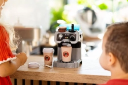 Zaradi realističnih kontrolnikov, snemljivih delov in varne plastične izvedbe se otroci naučijo osnov baristične »obrti«, razvijajo fino motoriko, domišljijo in socialne veščine. Set je kompakten, enostaven za pospravljanje in odlično dopolni vsako otroško kuhinjo.