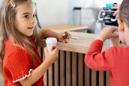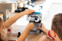 Ta sodoben in otrokom prijazen kavovar spremeni otroško kuhinjo v malo kavarno. Dovolj je napolniti rezervoar z vodo, vstaviti kapsulo, jo rahlo stisniti s tamperjem in pritisniti gumb – voda bo stekla v lonček kot pravo espresso. Idealno za ustvarjalno igro s prijatelji, sorojenci in pliškoti.