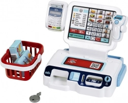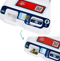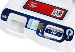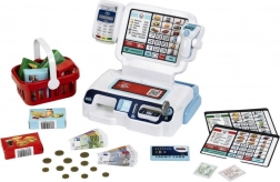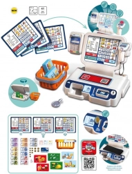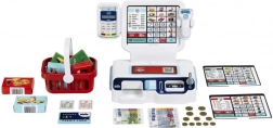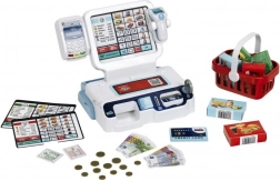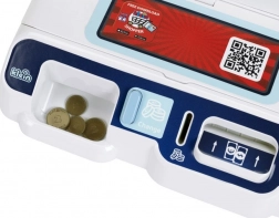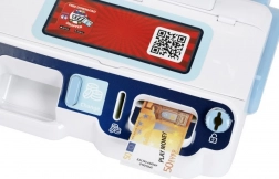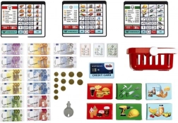 Priloženi so bankovci, kovanci in plačilna kartica. Otroci lahko shranjujejo denar v predalček, vstavljajo kovance in z »piskom« kartice zaključijo nakup.