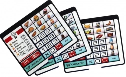 Tri tematske kartice spremenijo okolje blagajne v samooplačilo, restavracijo ali klasično trgovino. Otroci si izberejo, kakšno zgodbo bodo igrali.