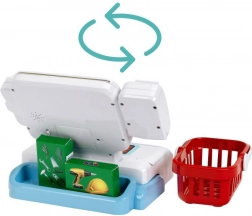 Priloženi so nakupovalna košarica, bankovci in kovanci, plačilna kartica ter izdelčne kartice, tako da lahko otroci skenirajo blago, ga vnašajo v blagajno in »plačajo« z gotovino ali kartico. Tri zamenljive prikazne kartice spremenijo postajo po razpoloženju – v trgovino, bistro ali klasično blagajno.