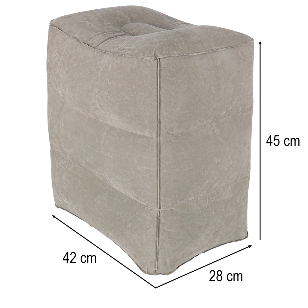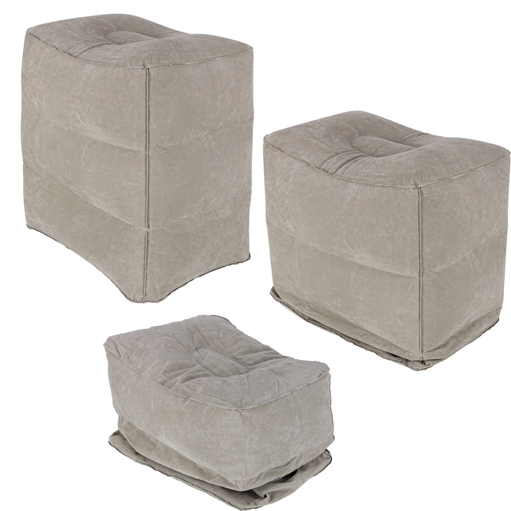 Razbremenite noge in izboljšajte krvni obtok z vsestransko napihljivo podnožko, ki služi kot puf in potovalna opora. Zahvaljujoč trem nastavljivim višinám jo zlahka prilagodite sedenju na kavču, v naslanjaču ali med dolgimi potovanji.