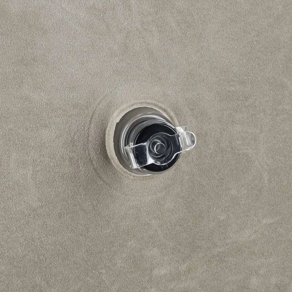 Odporno PVC z prijetnim flokiranim površinskim slojem zagotavlja stabilnost in udobje. Podnožka se hitro napihne z običajno tlačilko za vzmetnice ali žoge (nastavek 14 mm), po izpustu zraka pa jo shranite v kompaktno vrečko z zategovanjem.