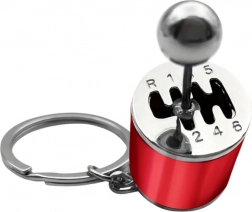 Kromirana zgornja ploščica z označenimi prestavami in rdeče ohišje delujeta realistično ter poudarita vaš šop ključev.