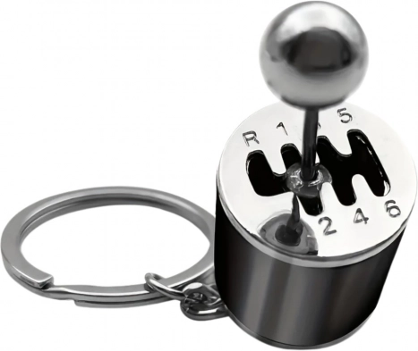 Stajliš obesek za ključe v obliki ročnega menjalnika bo navdušil voznike in ljubitelje avtomobilov. Ima robustno kovinsko ohišje, premično prestavno ročico za zabavno »prestavljenje«, vzdržljivo konstrukcijo in praktičen kovinski obroč z verižico za enostavno pritrditev na ključe, nahrbtnik ali torbo.