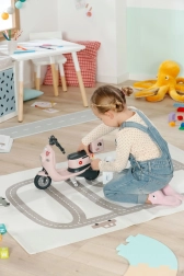 Privoščite svoji punčki BABY born moderen način „vožnje“ po mestu. Električni skuter na daljinsko upravljanje podpira domišljijo, igro vlog in fino motoriko. Otroci lahko menjajo smer vožnje, ustvarjajo svoje zgodbe in uživajo v realistični igri zahvaljujoč svetlobnemu učinku ob priklopu na polnilno postajo.