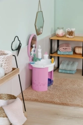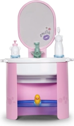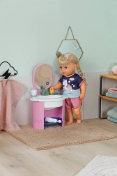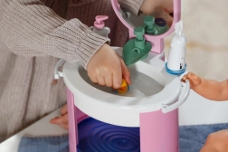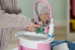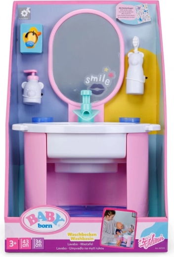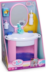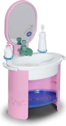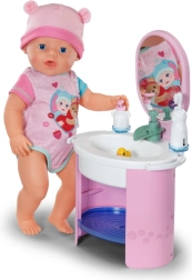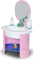 Umivalnik Baby Born otrokom ponuja pristno igro kopalnice brez potrebe po baterijah. Z ročnim črpanjem v umivalnik priteče prava voda, ki jo pomaga zadržati vesel zamašek Berta v obliki račke. Otroci lahko tako na zabaven in varen način vadijo higienske navade svoje punčke.