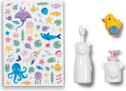 Priložena je zobna ščetka z mehansko vibracijsko funkcijo za še bolj realističen doživljaj ter praktičen dozator mila. Umivalnik je mogoče prilagoditi s pisanimi nalepkami z motivi podvodnega sveta, ki razvijajo ustvarjalnost in domišljijo.