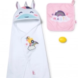 Ta čarobni komplet brisač BABY born prinaša vse, kar potrebujete za zabavne kopalne rituale. Dve brisači z motivom mavrice in samoroga bosta razveselili vsakega malega skrbnika, medtem ko kapuca z mavričnim rogom in prikupnimi ušeski doda vsakič pri sušenju vesel pridih.