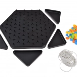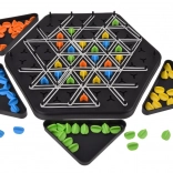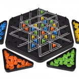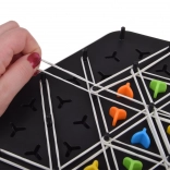 Pametna in napeta strateška igra za otroke in odrasle, v kateri z gumicami, napetimi med stebrički, ustvarjate in zavzemate trikotnike. Zmaga tisti, ki jih osvoji največ. Igra razvija strateško razmišljanje, prostorsko načrtovanje in fino motoriko ter je idealna za 2–4 igralce od 6 let.