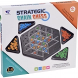 Verižni šah je izvirna namizna igra, v kateri igralci izmenično napenjajo pisane gumice med stebrički na igralni plošči. Vsaka nova gumica mora biti v ravni črti, dotikati se mora vsaj ene prej položene in segati v nov stolpec plošče. Ko zaprete trikotnik, ga označite s svojim žetonom. Igra se konča, ko ni več mogoče ustvariti nobenega novega trikotnika – zmaga igralec z največ osvojenimi oblikami.
