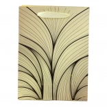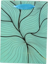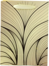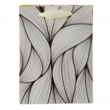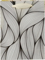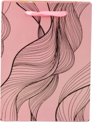Ta darilna vrečka izstopa s sodobnim dizajnom in razkošnimi zlatimi linijami, ki na barvnem ozadju ustvarjajo nežen valovit učinek. Zaradi čvrste izdelave je primerna tudi za težja darila, njene mere pa so odlične za srednje velike predmete.