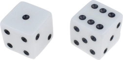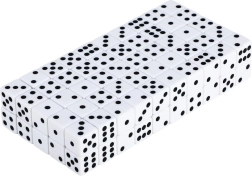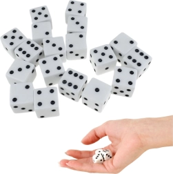 Ta univerzalen komplet kock odlično dopolni vaše namizne in družabne igre. Standardna dimenzija približno 1,5 × 1,5 cm lepo sede v roko, kontrastna izvedba bela s črnimi pikami pa zagotavlja odlično berljivost pri vsakem metu.