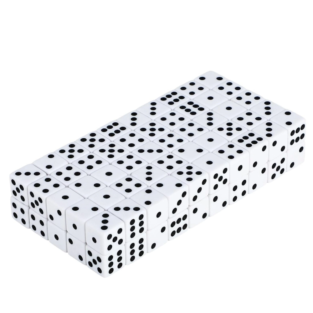 Komplet 100 belih igralnih kock 1–6. Odporne, dobro berljive, idealne za namizne in družabne igre, šole in klube. Certifikat CE.