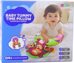 Podporni vzglavnik za dojenčka je zasnovan tako, da podpira pravilen razvoj od prvih dni življenja. Ergonomična oblika olajša položaj na trebuščku, kar naravno krepi mišice in otroka pripravlja na naslednje mejnike, kot sta sedenje ali plazenje. Mehki in prijetni materiali skupaj s kontrastnimi barvami spodbujajo vid, sluh in dotik.
