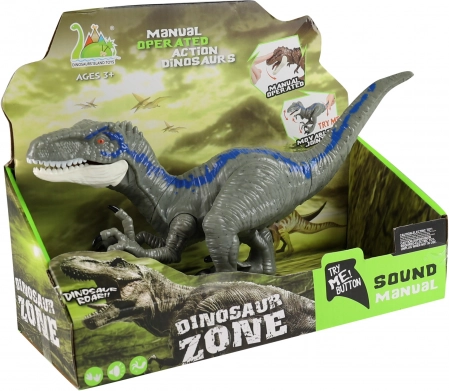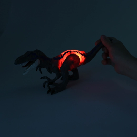 Ta podrobno izdelan dinozaver Velociraptor otrokom prinaša pristno izkušnjo iz prazgodovine. Ob pritisku na rep se sproži grozeče rjovenje in hkrati se prižge svetlobni učinek, ki poudari dramatično vzdušje igre. S pritiskom na glavo se odpre gobec in zažene gibanje sprednjih okončin, zato akcije nikoli ne zmanjka.