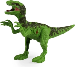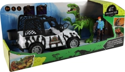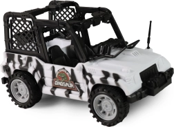 Podaj se v svet prazgodovinskih dogodivščin. Terensko vozilo dolžine 21 cm vozi na prosti tek, zato je idealno za hitre lovske vožnje v sobi ali na vrtu. Realistični dinozaver navduši s svetlobnimi učinki in rjovenjem, ki se aktivirajo s pritiskom na gumb, njegove premične okončine pa dodajo pristnost.