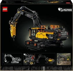 Odkrijte tehnične podrobnosti pravih gradbenih strojev z LEGO Technic VOLVO EC500 Hybrid. Model je opremljen z motorjem na baterijsko napajanje in menjalnikom, ki omogoča izbiro med štirimi funkcijami za gladko premikanje izteznega kraka, roke in orodja. S pomočjo ročice preprosto preklapljate med žlico in hidravličnim kladivom ter posnemate delo pravega bagra.
