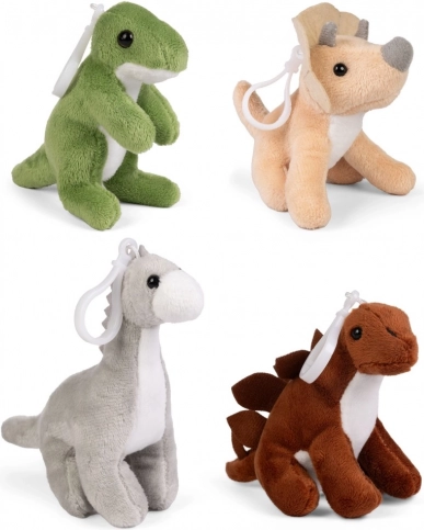 Plišasta obesek za ključe dinozaver 10 cm – mehak priponko z zanko za ključe ali nahrbtnik. 4 vrste dinozavrov, idealno drobno darilo za otroke.