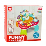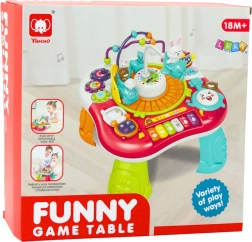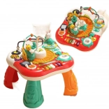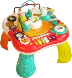 Mizico lahko uporabljate kot klasično stoječo mizico ali kot ploščato izobraževalno ploščo – zahvaljujoč snemljivim nogam se zlahka prilagodi starosti otroka in prostoru. Središče zabave je premični zajček, ki spodbuja pozornost in koordinacijo oko–roka, medtem ko klavirinček in bobenček popestrita igro z veselimi melodijami in zvoki.