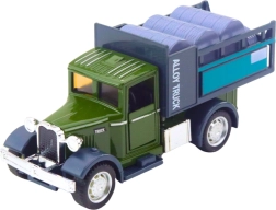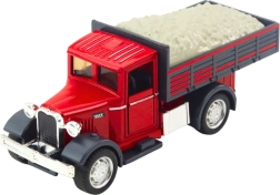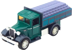 Realistični model klasičnega tovornjaka bo razveselil male in velike oboževalce delovnih vozil. Verodostojno izdelana kabina z odpirajočimi se vrati, kombinacija kovinskih delov in kakovostne plastike ter solidna nadgradnja dajejo igrači avtentičen videz in dolgo življenjsko dobo. Po potegu nazaj se vozilo zahvaljujoč pogonu pull back samo požene naprej.