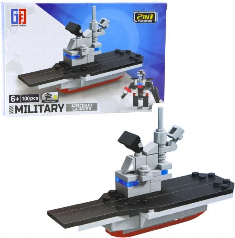 Gradbeni set 2v1: vojaška vozila in robot, 91–106 delov. Odporna plastika, vojaški dizajn, združljivo z drugimi seti. Odlična kreativna zabava.