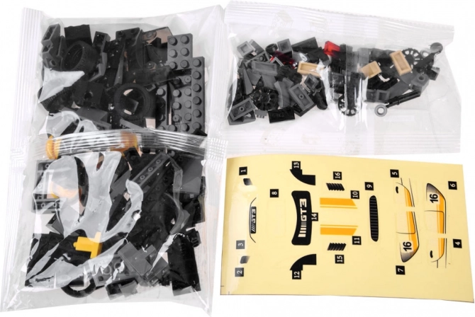 Ta tehnični komplet bo razveselil vsakega malega in velikega konstruktorja. Zahvaljujoč enostavnemu načinu spajanja so deli varni, trdni in je končni model stabilen. Priložene nalepke dajejo dokončanemu avtu dirkaški značaj in privlačen videz.