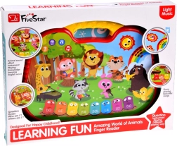 - Učenje imen: po pritisku na sličico igrača pove ime živali/glasbila; po pritisku rdečega gumba in ponovnem pritisku na sličico predvaja njihove zvoke.