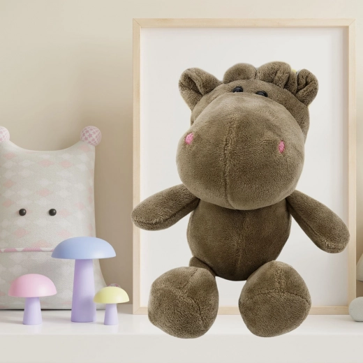 Ta rjavi plišasti povodni konj bo s svojim prikupnim videzom osvojil srce vsakega otroka – velik smrček, okrogla ušeska in nežni detajli. Zaradi mehkega pliša je odlična izbira za crkljanje in nudi občutek varnosti. Prisesek omogoča preprosto obešanje na okna, ogledala ali ploščice, zato je tudi igriva dekoracija.