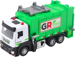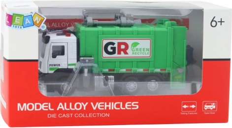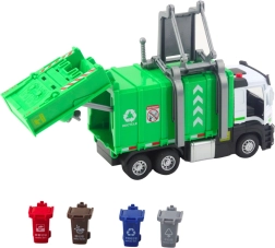 Model ima odpirajočo se zadnjo loputo in mehanizem za dvigovanje zabojnikov, zato je mogoče realistično nalagati in razkladati odpadke. Štirje barvni koši motivirajo otroke k ločevanju odpadkov ter učenju o varovanju okolja. Čvrsta konstrukcija iz plastike, dopolnjena s kovinskimi deli, prenese tudi intenzivno igro.