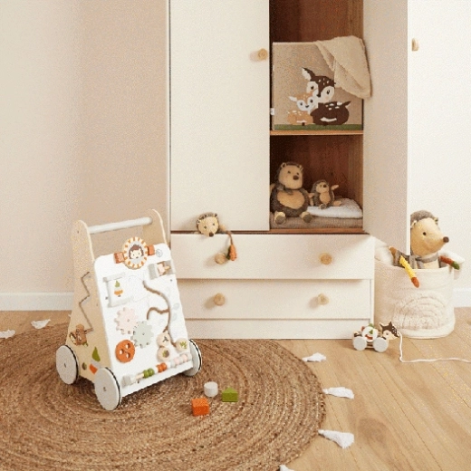 Leseni otroški hojnik Bieco z motivom gozdnih živalic je odličen spremljevalec za otroke od 12 mesecev naprej. Zahvaljujoč stabilni konstrukciji in udobnemu ročaju nudi oporo pri učenju hoje, medtem ko raznolike aktivnosti spodbujajo igro in raziskovanje. Slogovno zasnovo in kakovostna izdelava zagotavljata varno in dolgotrajno uporabo.
