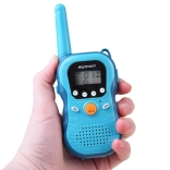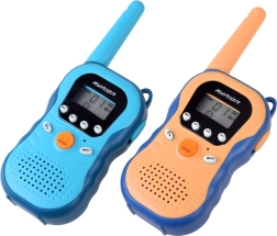 Zabaven komplet dveh otroških walkie-talkie radijskih postaj za igre na prostem in doma z dosegom do 3 km na odprtem prostoru. Enostavno upravljanje, 16 frekvenc, nastavitev glasnosti in modulator glasu (deček, deklica, robot + izvirnik) poskrbijo za veliko akcije. Ne manjka vhodni zvonec (4 toni), sponka za pas in odprtina za vrvico – idealno za vrt, plažo, gozd in tajne misije.