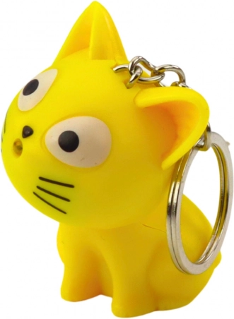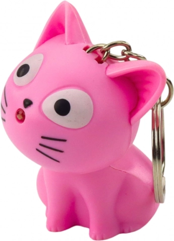 Prisrčen mačji obesek z LED svetlobo in zvokom. Lahek, trpežen, idealen za ključe ali nahrbtnik. Prepročno upravljanje z gumbom, mešanica barv.