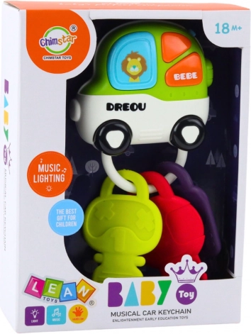 Ti interaktivni ključki z daljincem v obliki avtomobilčka so odlična izbira za dojenčke in malčke. Otrok s pritiskom na velike barvne gumbe sproži utripajoče lučke in zvočne učinke, pri čemer urjuje koordinacijo oko–roka in radovednost. Mehki ključki z različno teksturo služijo kot grizalo in prinašajo olajšanje pri izraščanju zobkov.
