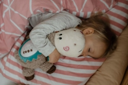 Vgrajeni projektor projicira nežne zvezdice na strop in stene, ki otroke naravno pomirijo ter ustvarijo vzdušje za spanje.