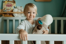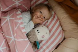 Mehka plišasta površina je nežna do občutljive otroške kože in vabi k crkljanju – idealna za posteljico in na poti.