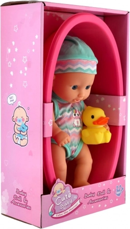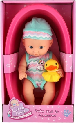 Ta prisrčna punčka je pripravljena na vsako kopalno dogodivščino. Shranjena v lahki plastični kadici z rumeno račko motivira otroke k domiselni igri nege dojenčka, učenju rutin in razvoju socialnih veščin.