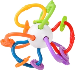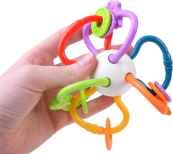 To grizalo je izdelano iz kakovostnih, varnih materialov, primernih za dojenčke. Zahvaljujoč prožnim, zvitim delom ga je enostavno prijeti, masira dlesni in hkrati nežno ropota, kar razvija sluh. Gladko drseči barvni elementi vabijo k raziskovanju in urijo fino motoriko.