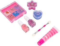Odkrijte čar ličenja za male dame s tem otroškim make-up kompletom v rožnato‑vijoličnih odtenkih. Varna sestava, prijazna do občutljive kože, mat senčila, bleščice, šminka in lak za nohte spodbujajo ustvarjalnost in igrivo domišljijo. Privlačna embalaža je kot ustvarjena za stilno darilo in izpolnjuje standard CE in EN 71 za varno uporabo od 3. leta dalje.