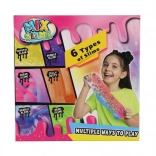 Odkrijte zabavni svet ustvarjanja s kompletom sluzov, ki vsebuje 6 različnih vrst za neskončno eksperimentiranje. Vsak sluz ima drugo teksturo in lastnosti, zato bodo otroci uživali v različnih načinih igre. Z dodatki lahko sluze kombinirajo, okrašujejo in ustvarjajo izvirne kreacije. Sluz je mehak, prožen, lahko oblikovalen in spodbuja kreativnost ter fino motoriko.