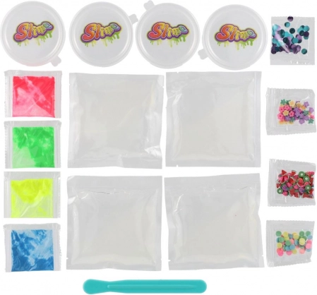 - Poseben prašek in sestavine za izdelavo sluza, okraski (odvisno od kompleta)